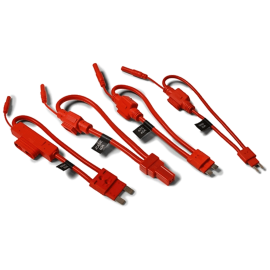 The kit comprises the following 19 different sized sets of 4 universal breakout leads and a set of back-pinning probes: 14 sets with flat blade connectors in different sizes (0.6 mm, 0.8mm, 0.84mm, 1.0mm, 1.2 mm, 1.3mm, 1.5mm, 2.0 mm, 2.3 mm, 2.8 mm, 4.8 mm, 6.0 mm, 8.0mm, 8.3mm). 4 sets with round pins in different sizes (1.5 mm, 2..